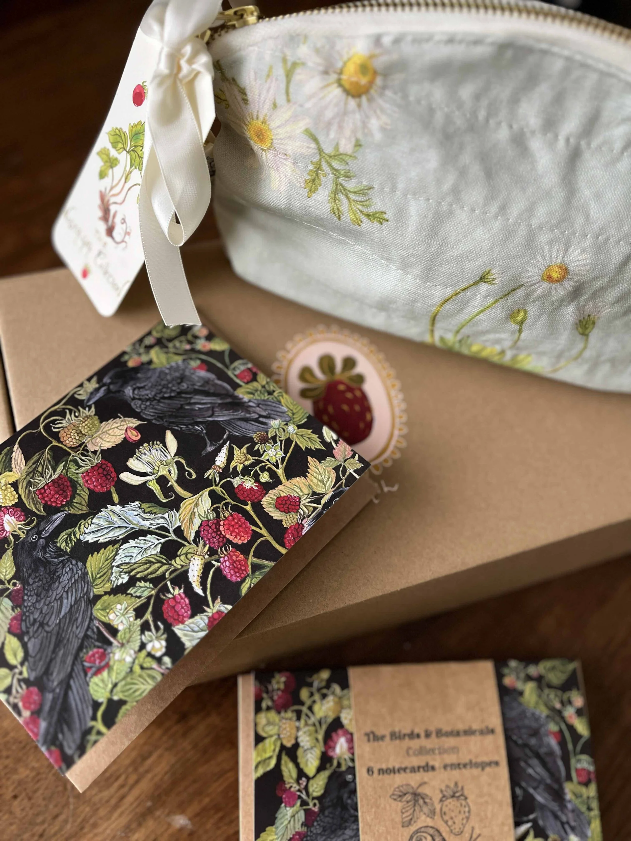 It all started with the Nostalgia fabric collection—hand-painted patterns by Strawberry Snail, printed on to fabric and hand-sewn into tea towels. Enter the Petal Pouch—handmade entirely from scraps of those tea towels and sewn in the studio with love.