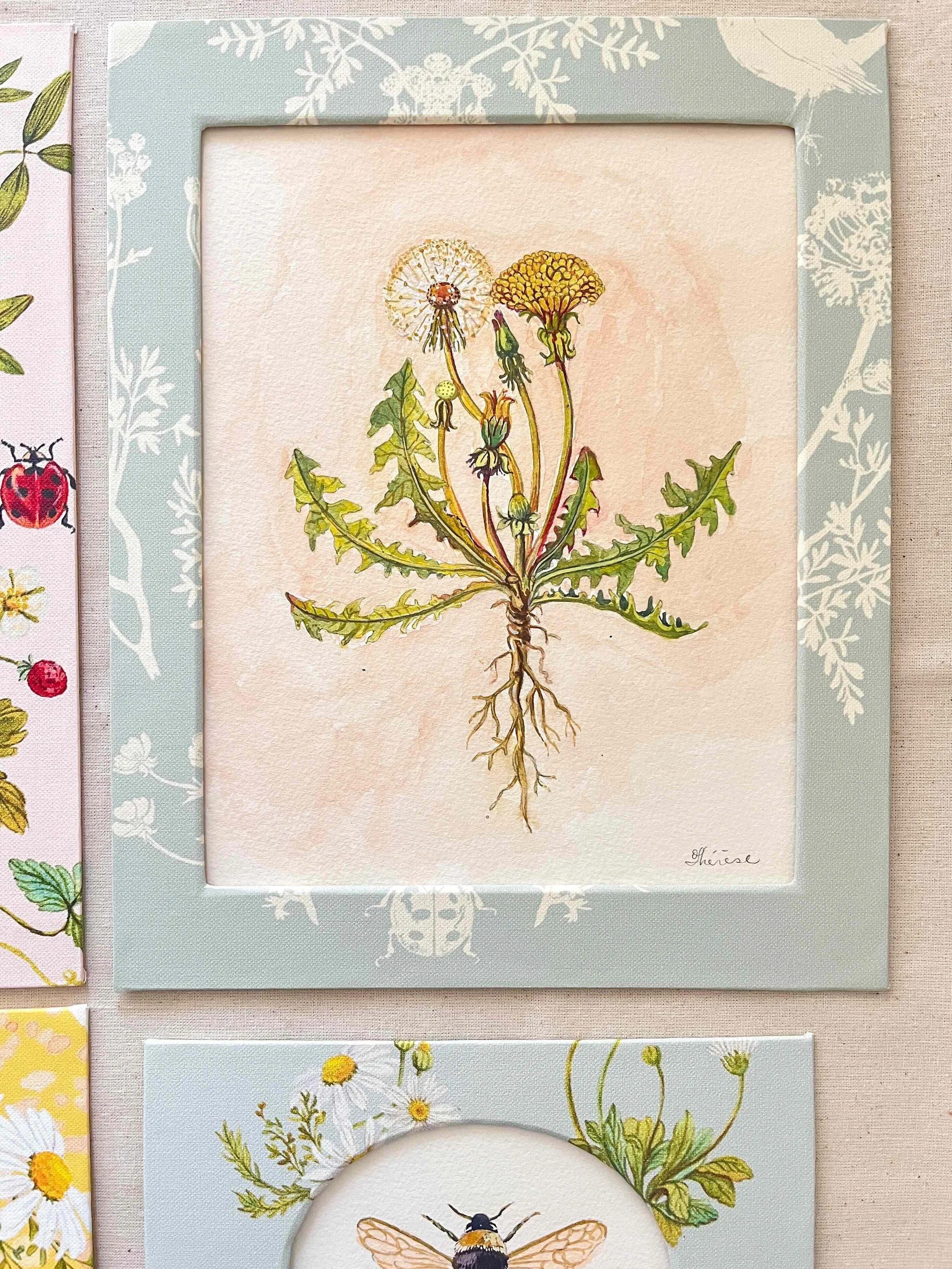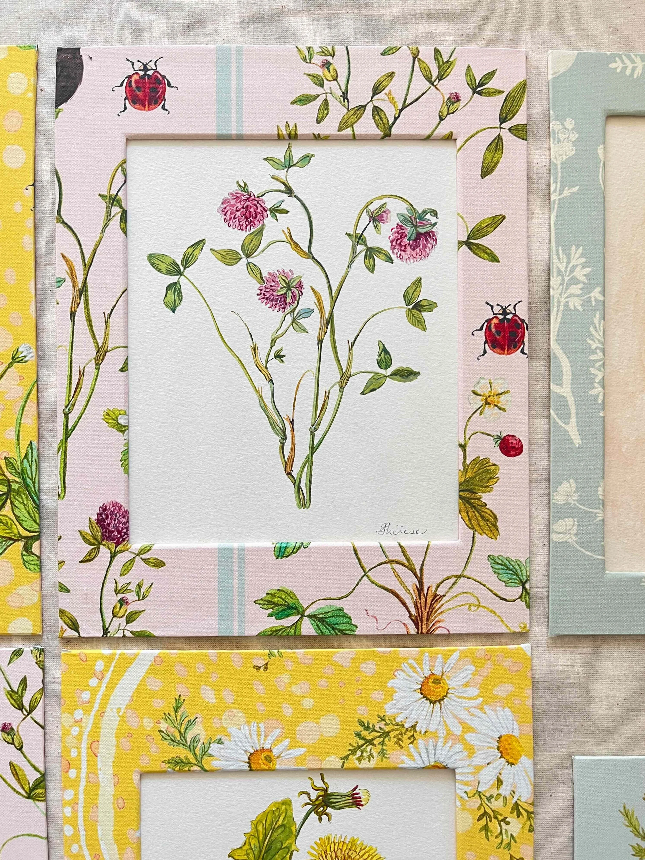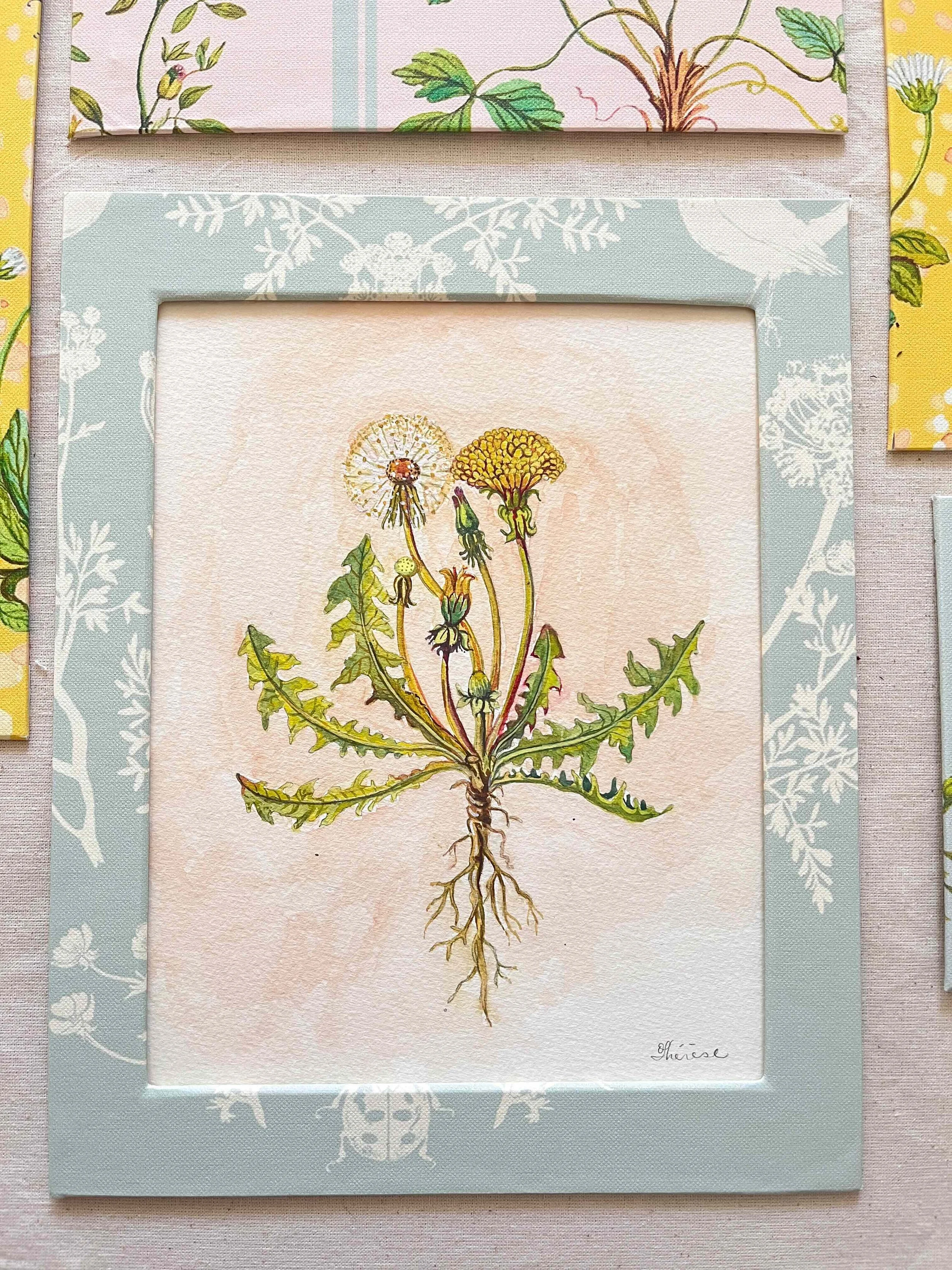 Let’s face it, most of us are overwhelmed by framing and avoid it for as long as possible. Don’t! First, it’s the best way to protect your artwork and second—the artwork moved you enough to take your money, so let it give you joy every day by hanging it in your home! My original Nostalgia paintings are all matted to fit a standard frame. I offer a mat for my Birds & Botanicals prints to fit a standard 12x12 inch frame, so it’s easy. My best advice? Go all out with an elaborate vintage frame or go really simple with a narrow warm wood or metal (gold) frame.