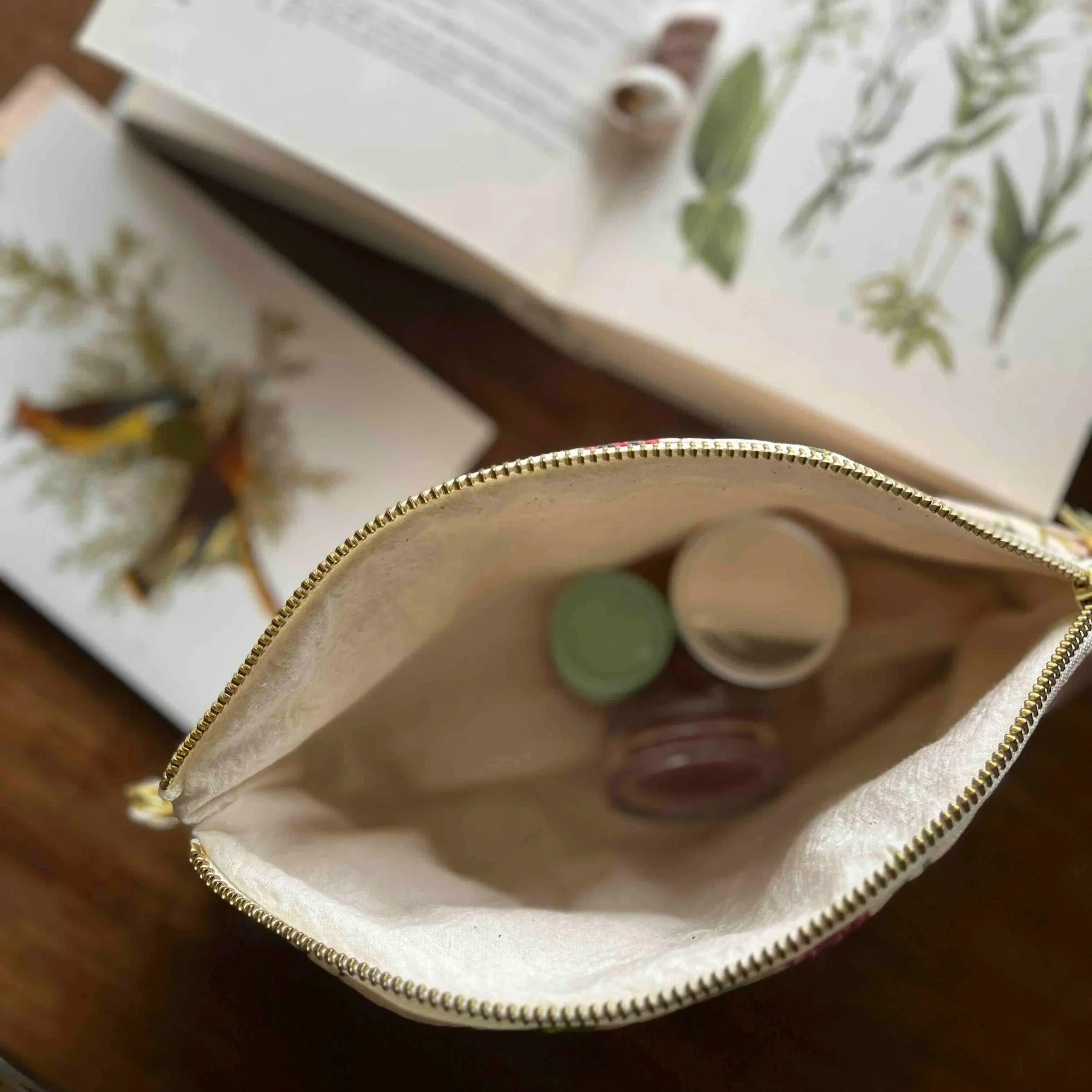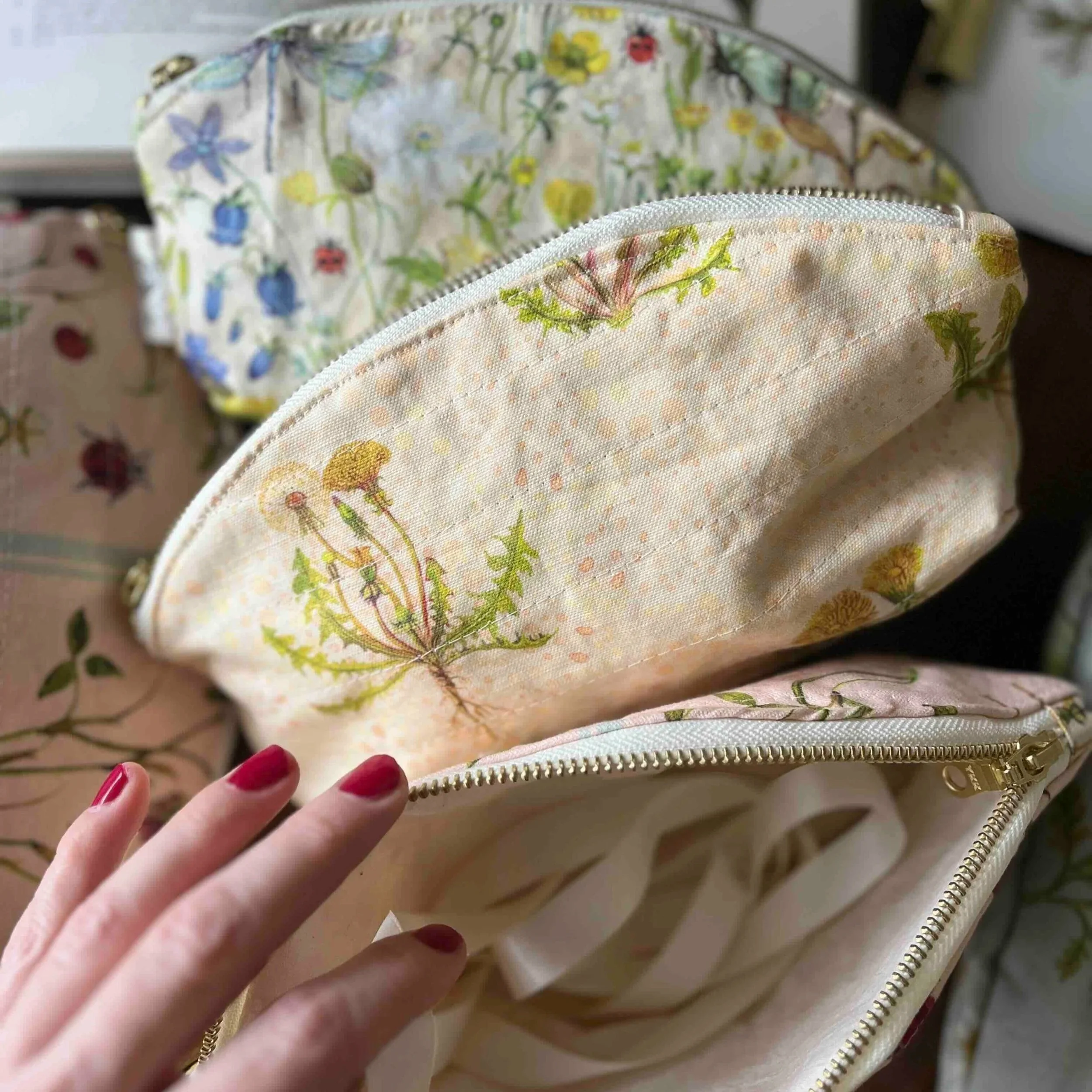 exterior fabric: combed cotton and linen with my Cordelia pattern design. Quilted with 100% cotton canvas for extra structure.